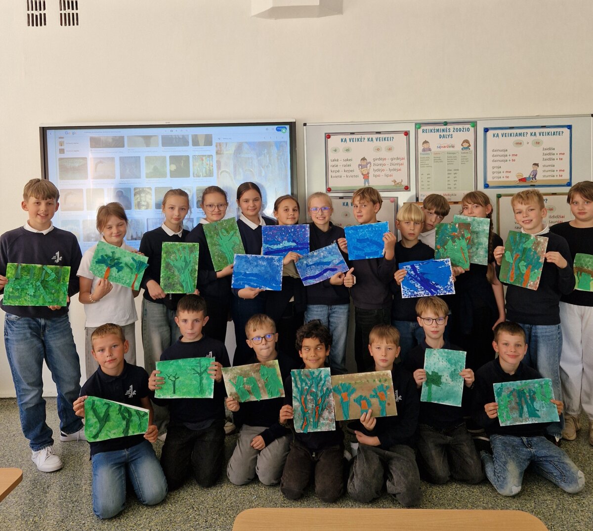 Štai 4a klasės mokiniai turėjo kūrybišką muzikos – dailės – technologijų pamoką. Jos fone skambėjo simfoninės poemos ,,Jūra“ ir ,,Miške“.