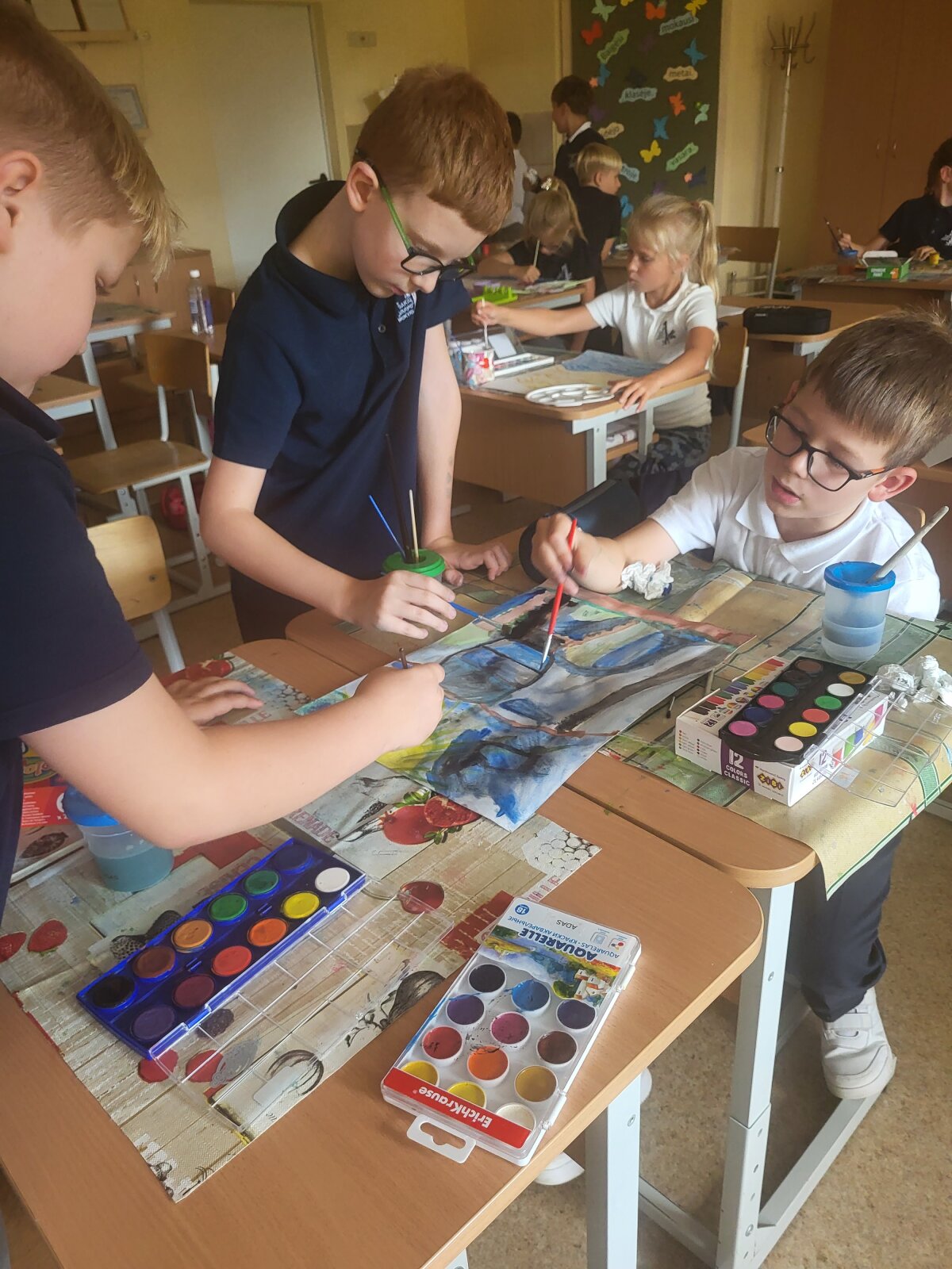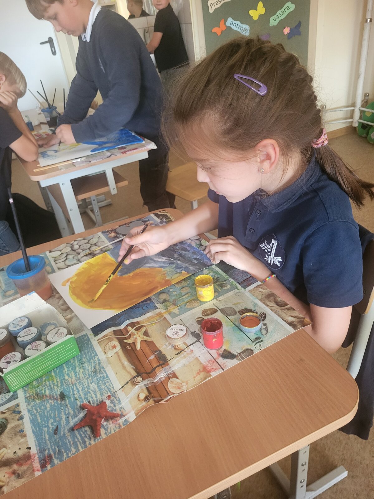 Rugsėjis ,,Varpo“ mokykloje čiurlioniškas. Kūrybingos pradinių klasių mokytojos su savo mokiniais kūrė paveikslus, klausė muzikos, atliko kūrybines užduotis.