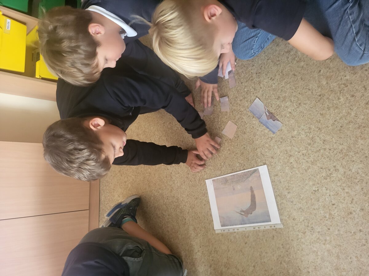 Kuo šis dailininkas yra vienintelis toks pasaulyje? Kuo jis skiriasi nuo kitų? Kad M. K. Čiurlionis buvo vienintelis profesionalus muzikantas, kompozitorius ir savo paveikslus kūrė per muziką – apie tai ir apie kompozitoriaus kūrybą kalbėjo 2a klasės mokiniai. Jie dar žiūrėjo ir filmą apie M.K. Čiurlionį. Buvo smagu ir įdomu dailininko paveikslus sudėlioti į dėliones. O po to kiekvienas piešė savaip, bandydami pagauti didžiojo dailininko spalvas ir braižą. Ar pavyko? Tegul kalba darbai...