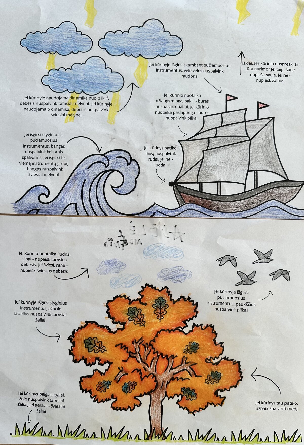 Štai 3a klasės mokiniai susipažino su M.K. Čiurlionio biografija, kūryba. Klausydami poemų atliko užduotis – kokie instrumentai skamba, kokia nuotaika ir dinamika, kaip baigiasi kūriniai? Spalvomis išreiškė savo nuotaiką klausant kūrinių.