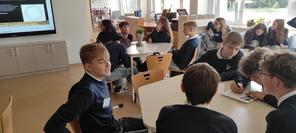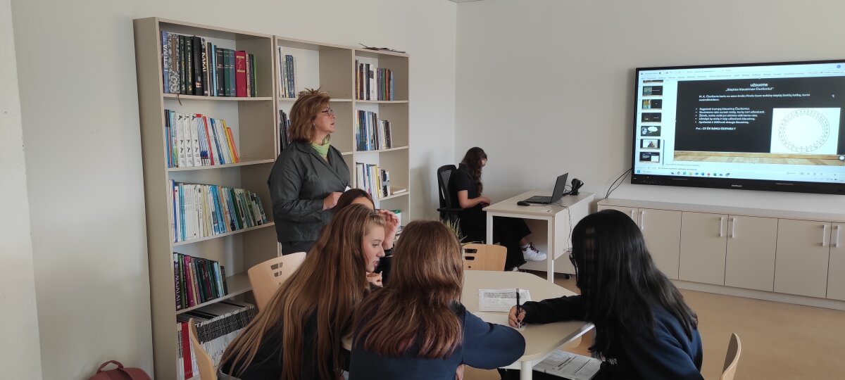 Rugsėjo mėnesį net dvi dienas muzikos pamokos vyko šviesioje visomis prasmėmis mūsų mokyklos bibliotekoje. Tai nuostabi duoklė mūsų garsiam menininkui M. K. Čiurlioniui ir puiki patirtis mokiniams. Šios pamokos tapo ne tik pažintimi su Čiurlionio muzika, bet ir jautriu išgyvenimu – kelione į garsų, spalvų ir jausmų pasaulį. Kūrybiškai, jautriai ir atvirai mokiniai tyrinėjo menininko palikimą, klausėsi jo kūrinių, analizavo emocijas, o biblioteka virto erdve, kurioje susitiko praeitis ir dabartis, klasika, jaunatviškas smalsumas. Šioje kelionėje dalyvavo 8d, 6b, 7s, 5a, 6d, 8c klasių mokiniai. Talkino mokytojos Lina Smilgiuvienė, Dangira Juknevičienė, bibliotekininkė Rita Jasaitienė, viešėjo direktoriaus pavaduotojas Darius Šlėderis. ,,Aš regiu muziką, girdžiu paveikslus“ – sakė M. K. Čiurlionis. ,,Gamta – tai mano evangelija“ – kartojo Jis.