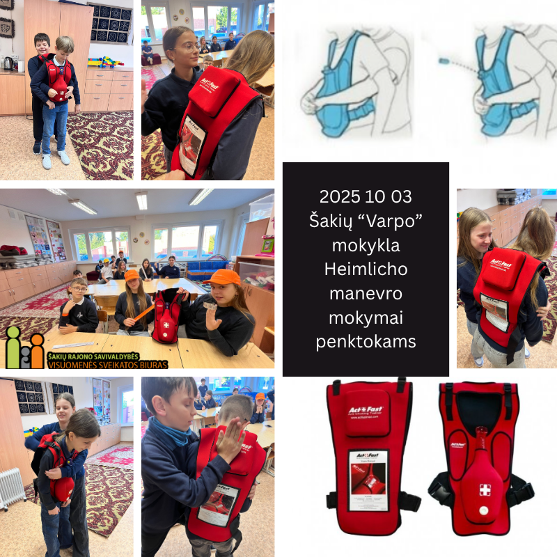 Šiandien pamokoje Šakių ,,Varpo“ mokyklos 5b klasės dvylika mokinių susipažino su gaivinimo pagrindais. Kalbėjome apie tai, kaip svarbu laiku pastebėti, kada žmogui reikia pagalbos ir ką daryti, jei kas nors užspringsta.