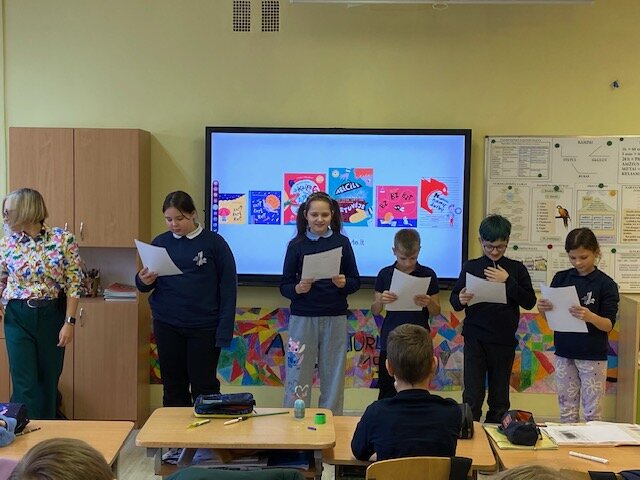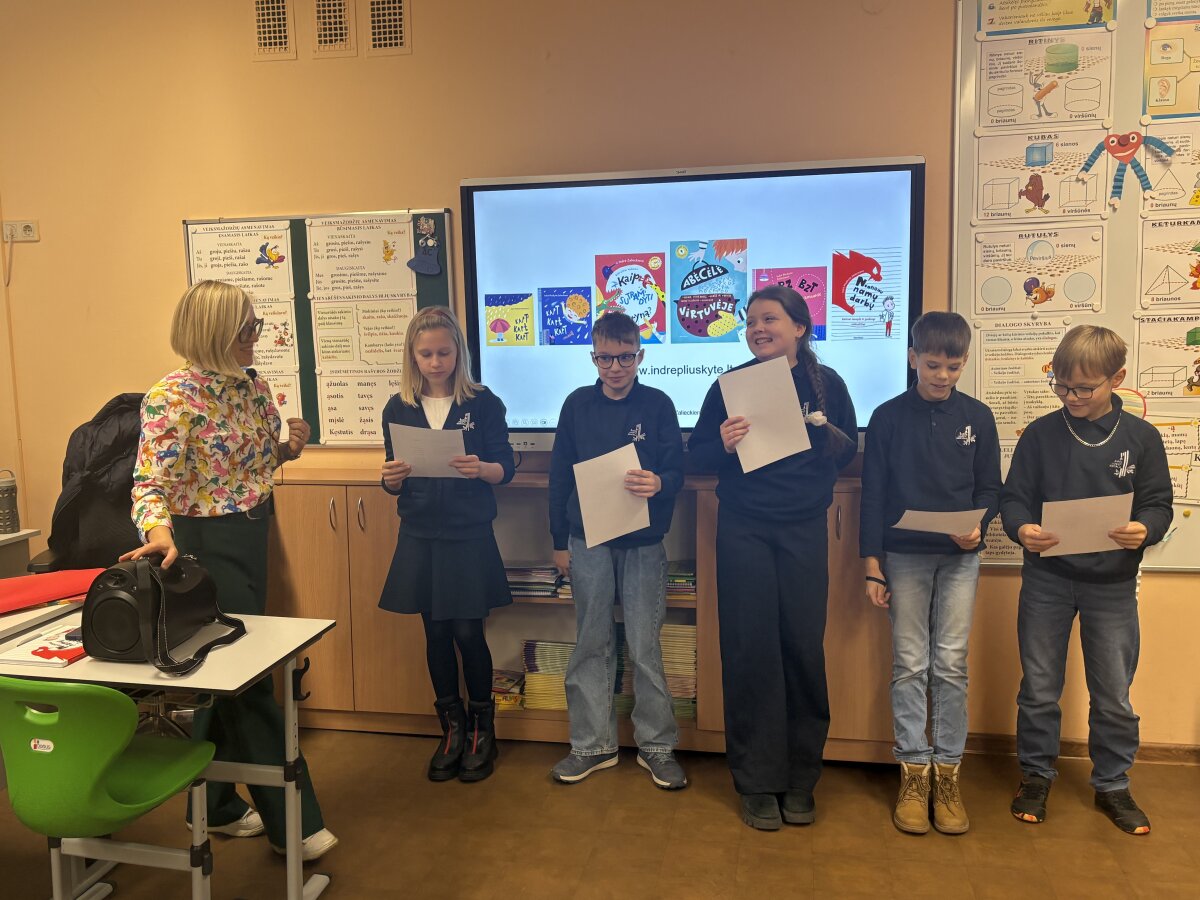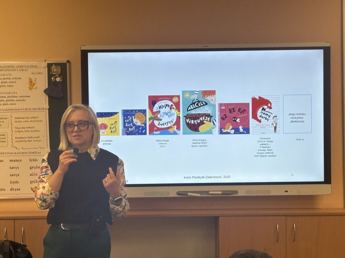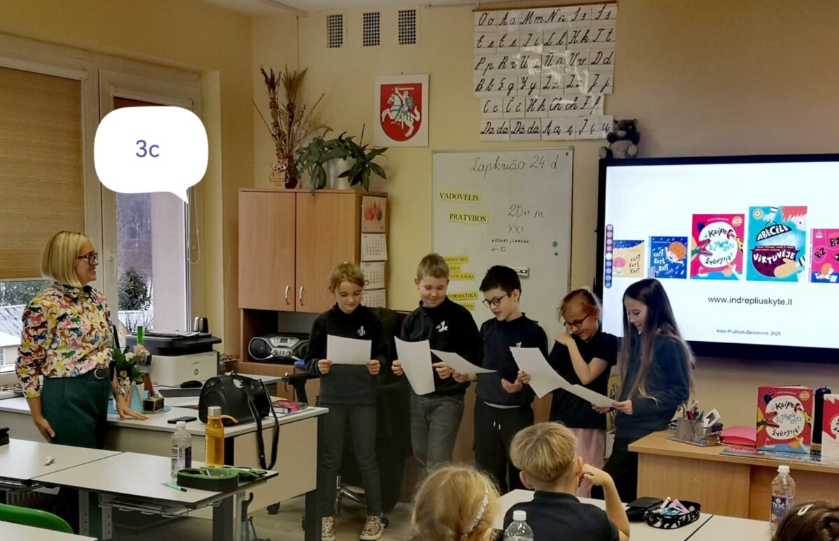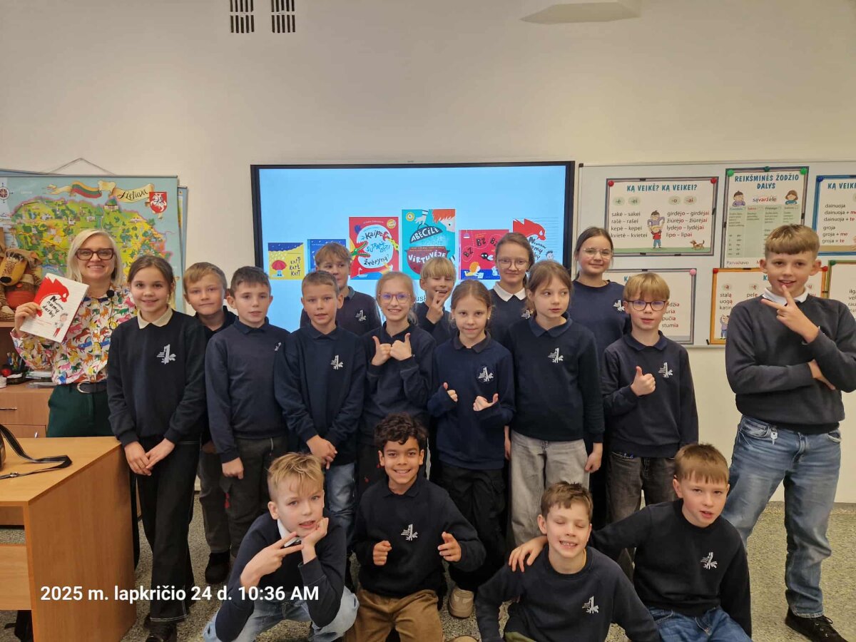 Lapkričio 24 d. 3c, 4a, 4c, 4d ir 4e mokinius aplankė kūrybiška ir šilta viešnia – vaikų knygų autorė bei iliustratorė Indrė Pliuškytė-Zalieckienė. Vaikai išgirdo, kaip gimsta knygų veikėjai, patys bandė kurti, o susitikimas tapo tikra vaizduotės ir įkvėpimo švente. Ačiū autorei už dovanotą kūrybinį džiaugsmą ir prasmingą edukaciją