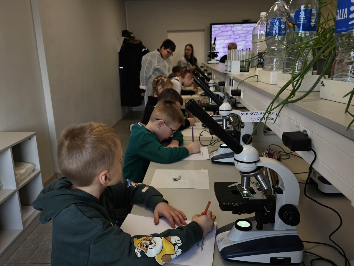 Kartu su mokytoja Almute Ščajeviene ir jos padėjėjais – Liudu, Fausta, Matu, Vita ir Domu – mažieji leidosi į įdomią pažintį su „Paslaptingu Mikropasauliu“. Vaikai įdėmiai klausėsi mokytojos ir su dideliu smalsumu stebėjo akimi nematomą gyvybės pasaulį.