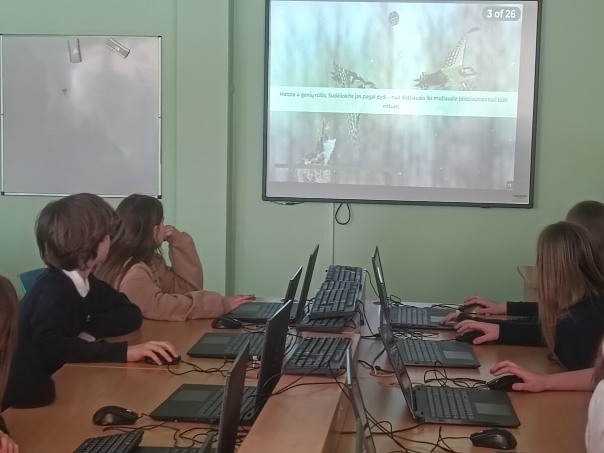 Vasario 27 d. 5b klasės mokiniams vyko netradicinė gamtos mokslų pamoka. Ją vedė VMU Šakių padalinio vyriausiasis miškininkas Simonas Šilingas. Mokiniai išklausė informaciją apie Lietuvoje žiemojančius paukščius. Po to dalyvavo nuotaikingoje viktorinoje: ,,Genio kalvė“. Visi dalyvavę viktorinoje miškininkų buvo apdovanoti prisiminimo dovanėlėmis, o prizinių vietų laimėtojai - vertingomis dovanomis.