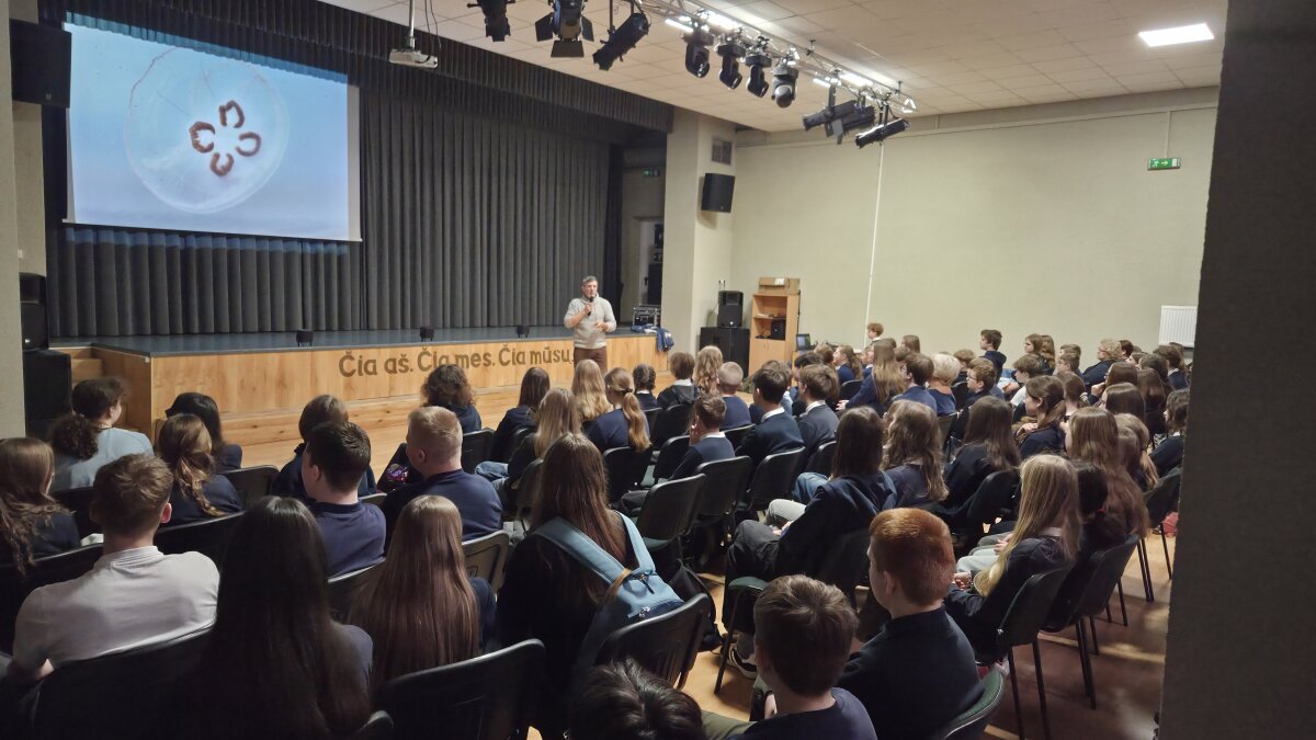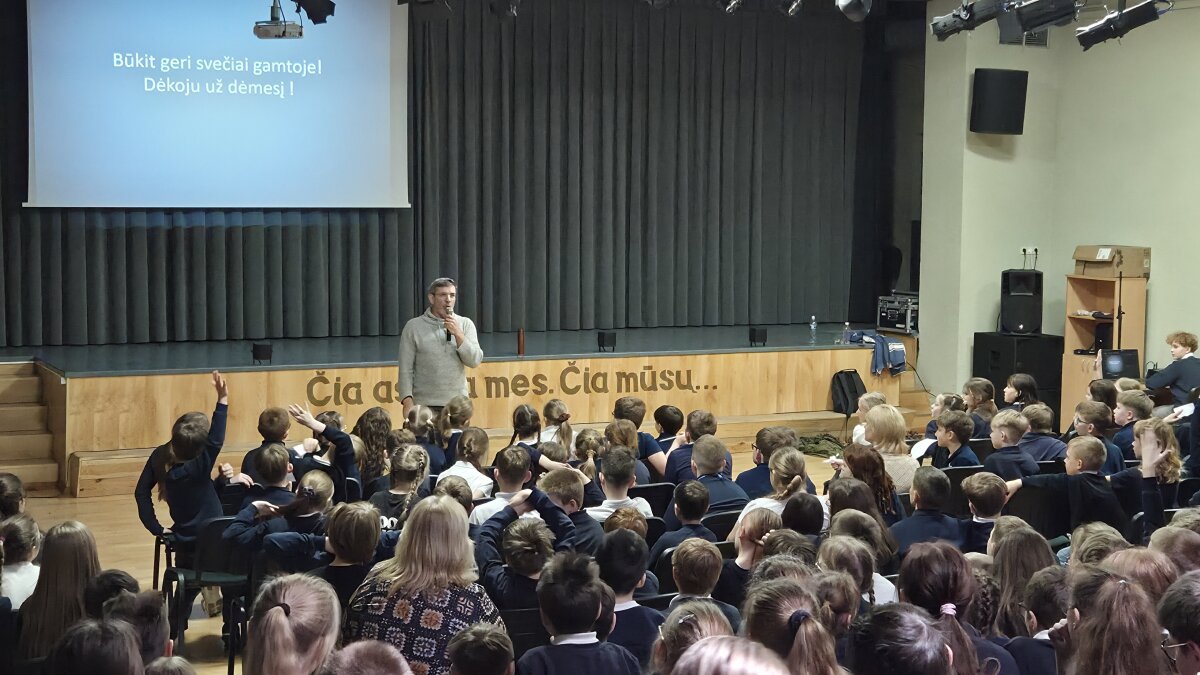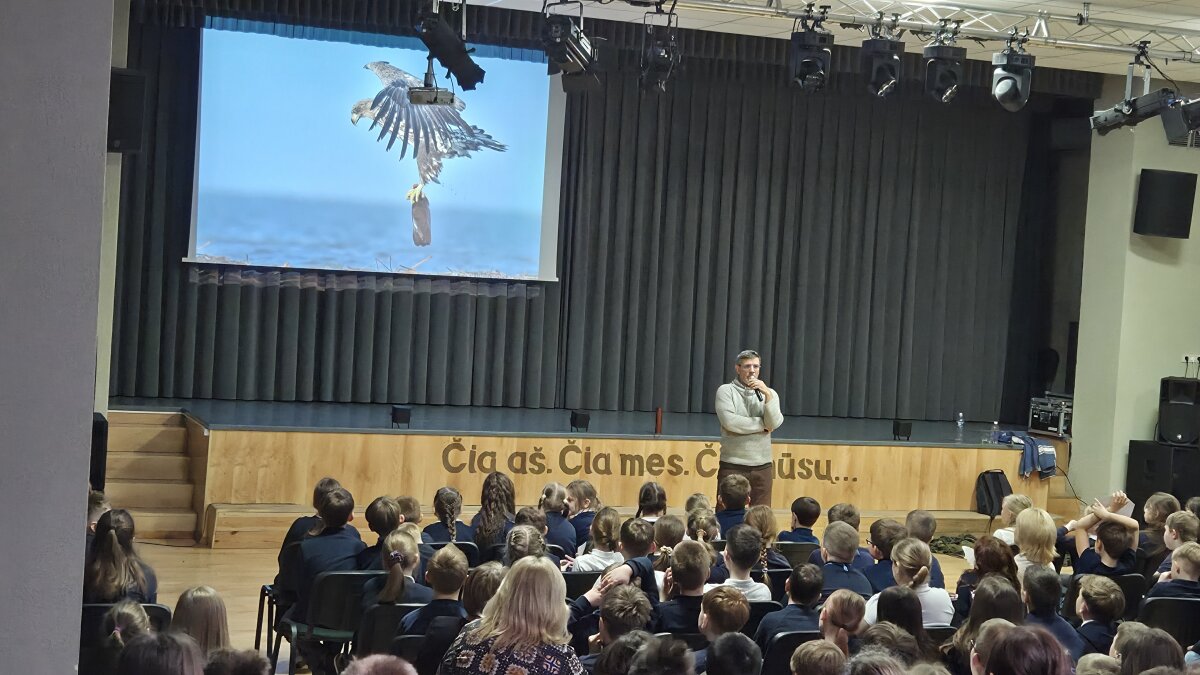 Mokyklos aktų salėje vyko įdomus ir įkvepiantis susitikimas su žinomu gamtininku M. Čepuliu. Renginio metu mokiniai turėjo galimybę iš arčiau susipažinti su Lietuvos gamta, jos gyvūnija bei išgirsti daugybę įtraukiančių istorijų iš gamtininko patirties.