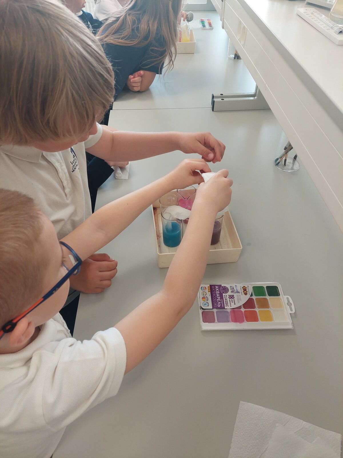 Balandžio 8 d.,1a klasės mokiniai dalyvavo įdomioje ir įtraukiančioje gamtos mokslų tiriamojoje pamokoje, kuri vyko gamtamokslinėje laboratorijoje. Pamokos metu vaikai tyrinėjo vandens savybes atlikdami praktinius bandymus – stebėjo, kaip vanduo „vaikščioja“ ir kaip skirtingi skysčiai tarpusavyje maišosi.