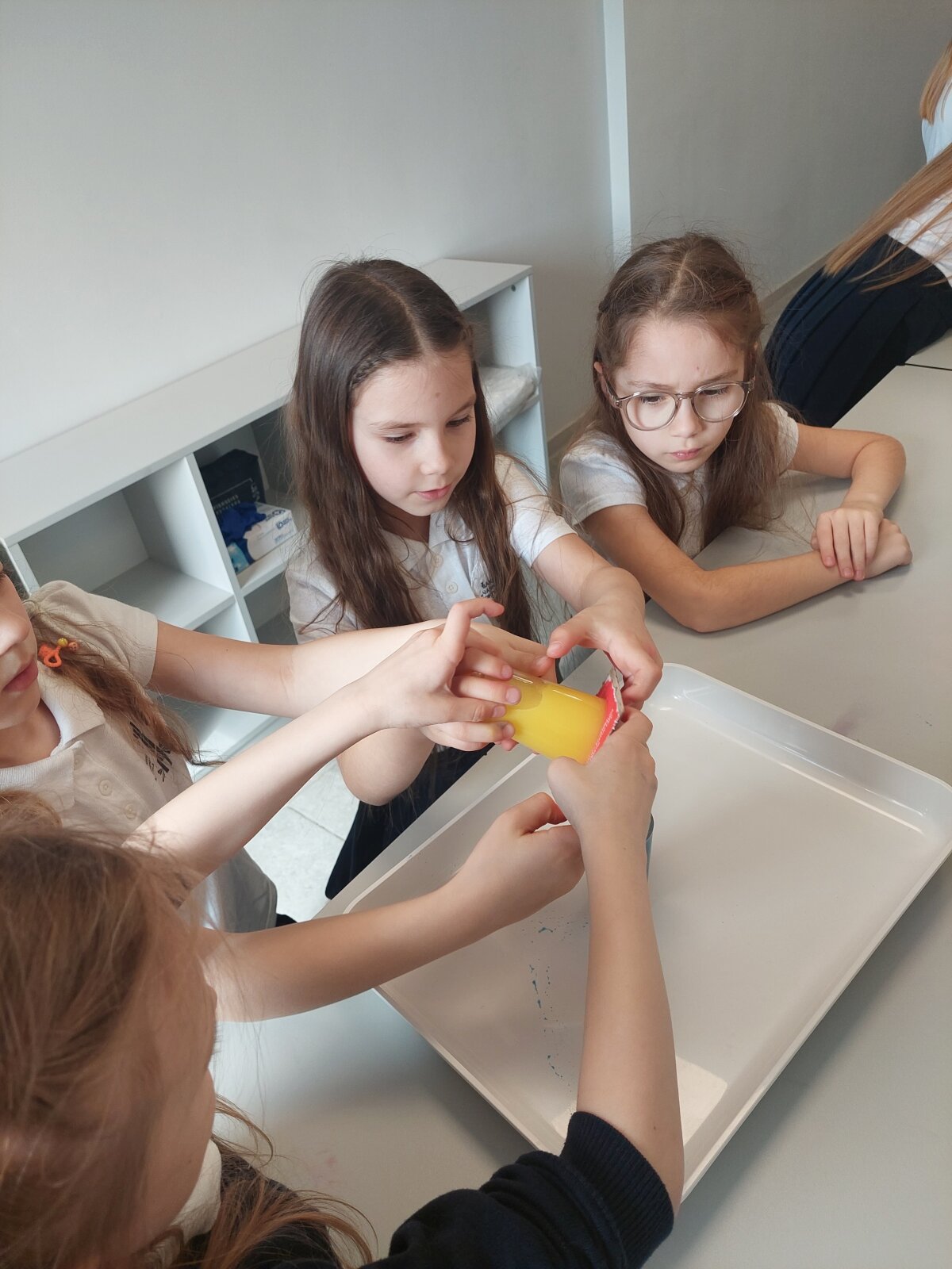 Tai buvo kupina atradimų, smalsumo ir gerų emocijų pamoka, leidusi vaikams pasijusti tikrais mažaisiais mokslininkais! Ir kaip visada mums geranoriškai padeda chemijos ir technologijų vyr. mokytoja Irmina.