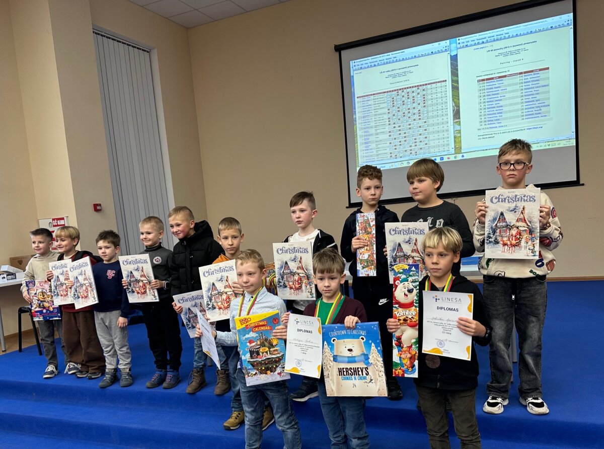 Lapkričio 22 d. Vilniuje, Lietuvos neformaliojo švietimo agentūros patalpose, vyko Lietuvos mokinių (U13, U10 ir U08) paprastųjų šaškių pirmenybės, kuriose dalyvavo 124 vaikai iš įvairių šalies miestų. „Varpo“ jaunųjų šaškininkų rezultatai puikūs! Labai nudžiugino Guodos Šuopytės laimėtas sidabro medalis M10 grupėje! Šeši šakiečiai šaškininkai pateko į geriausiųjų dešimtukus ir buvo apdovanoti LINEŠA prizais. Po varžybų aplankėme modernų centrą Vilnius Outlet, draugiškai pavakarieniavome ir nusifotografavome prie Kalėdinės eglutės.