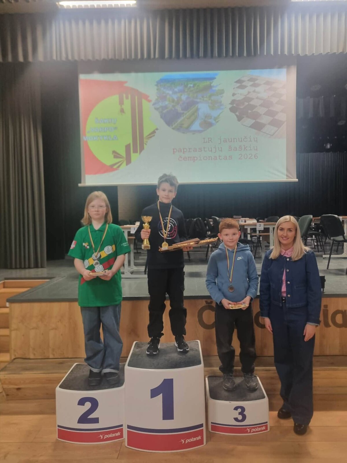 Berniukų grupėje čempionu tapo Demian Akimcev iš Vilniaus, surinkęs 16 taškų iš 18. Mergaičių tarpe savo pranašumą įrodė šiaulietė Vakarė Sabaliauskaitė, surinkusi 17 taškų iš 18! Šakiečiai čempionate buvo dviem-keturiais metais jaunesni, taigi, nepavyko užimti aukštesnių vietų, tačiau pavyko įgauti žaidybinės praktikos su pajėgiais varžovais.