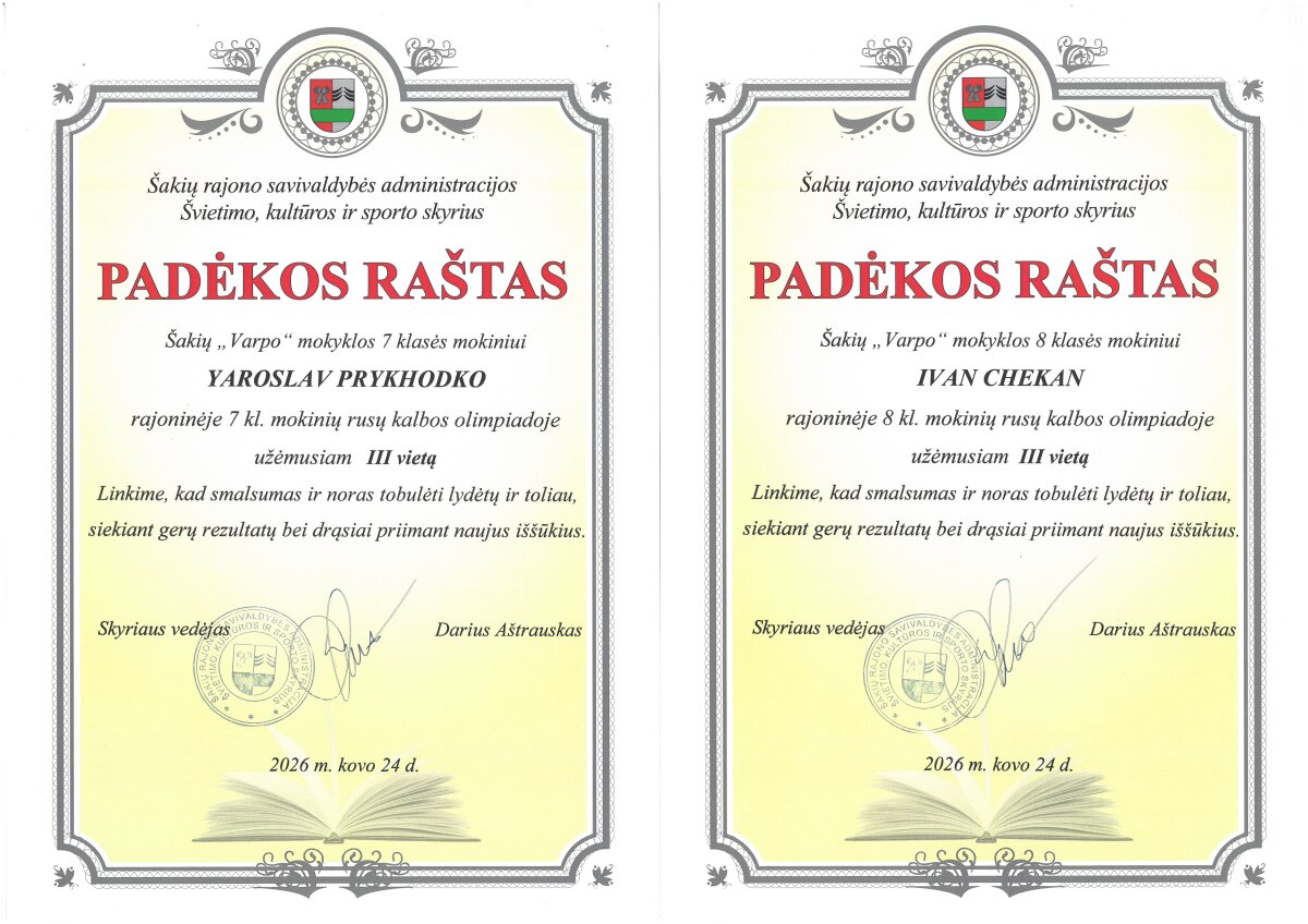 Sveikiname rajoninės rusų kalbos olimpiados nugalėtojus