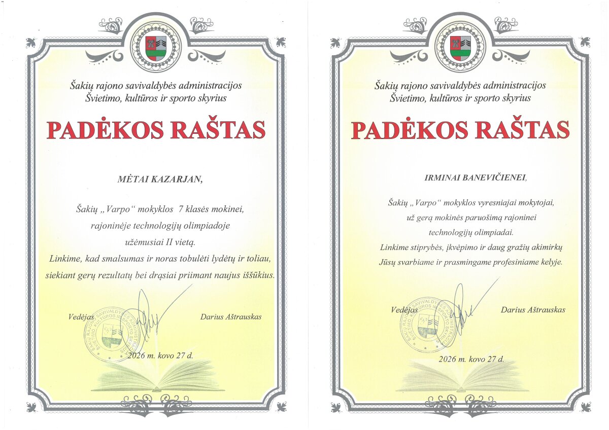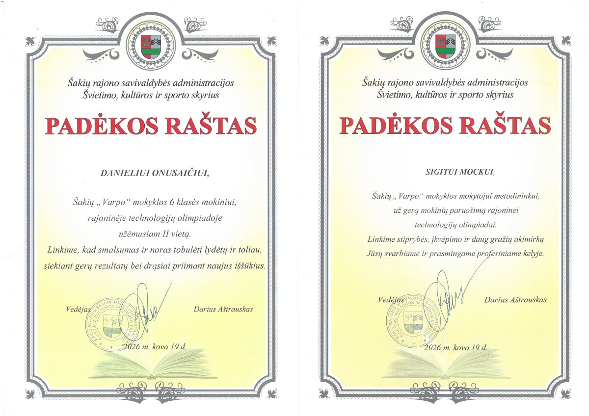 Sveikiname rajoninės technologijų olimpiados nugalėtojus