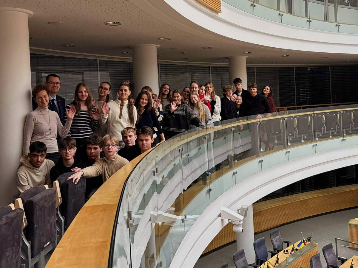 Moksleiviai dar lankėsi LR Seimo rūmuose. ,,Klaidžius“ Seimo rūmus aprodė ir papasakojo apie parlamento darbus bei įstatymų leidybos procesą ir politikų kasdienybę Seimo narys Darius Jakavičius.